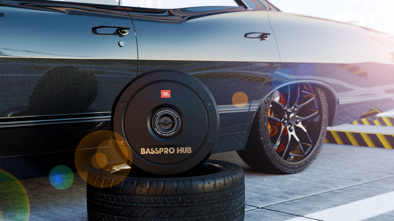Loa trầm 11 “(279mm) trong Basspro HUB. Để BassPro Hub không đạt quá nhiều diện tích trên xe, JBL đã thiết kế loa như 1 chiếc bánh xe thu nhỏ, vừa đủ mục đích đặt vào bên trong lốp dự phòng và có thể cố định lại bằng ốc vít. Loại loa siêu trầm này có thể thích hợp với các loại bánh xe đường kính 381mm (khoảng 15 inch) và dày 195mm trở lên..Cung cấp chất lượng âm thanh, hiệu suất âm trầm tuyệt vời, phù hợp với tất cả các loại xe ô tô. Loa rất tuyệt cho những tín đồ nhạc mạnh với những bản nhạc rock, DJ…